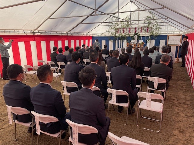 式典には、弊社代表取締役をはじめ、施工・設計に携わる皆様ならびに金融機関の皆様方にもご参加いただき、建設プロジェクトがいよいよ本格的に動き出す節目の場となりました。